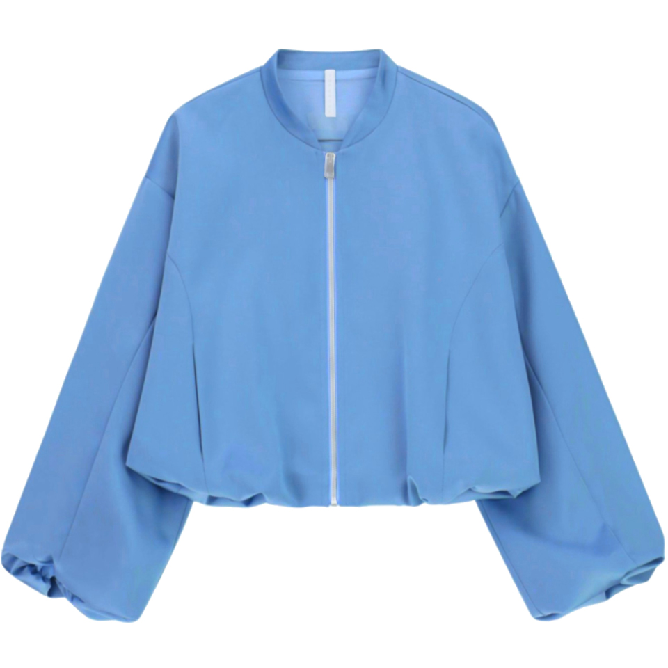 Skrátená dámska bomber bunda Imperial s objemnými rukávmi a výrazným zapínaním na zips vpredu. Čistá, štruktúrovaná silueta zvyšuje všestrannosť rafinovaných outfitov, umožňuje sofistikované osobné vyjadrenie a vytváranie výrazných moderných outfitov v rámci mestského šatníka.