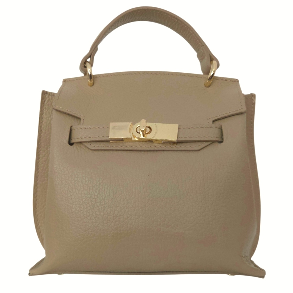 Kabelka zaujme svojou elegantnou lichobežníkovou siluetou a precíznym spracovaním. Pevné rúčky umožňujú pohodlné nosenie v ruke alebo na predlaktí, čo dodáva vášmu vzhľadu sofistikovaný rozmer. Ústredným prvkom je luxusné zlaté kovanie a bezpečné, štýlové zapínanie na otočný zámok, ktoré kabelke dodáva punc exkluzivity.