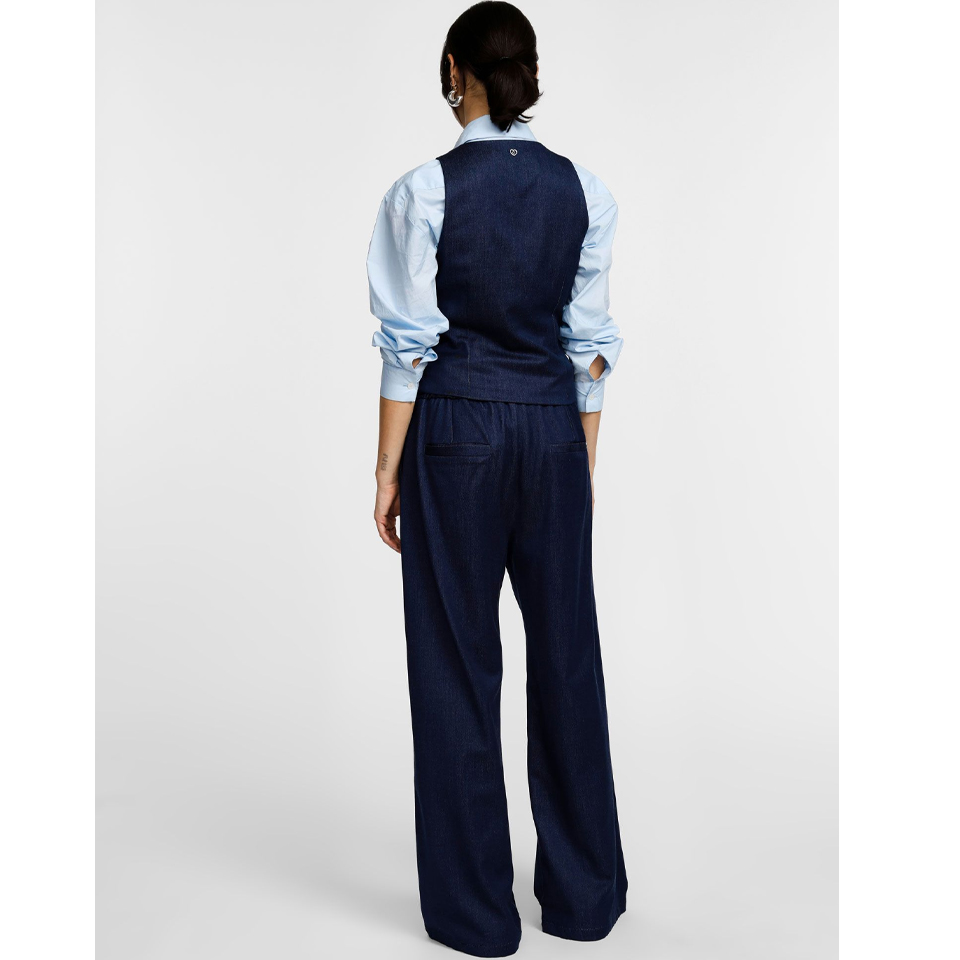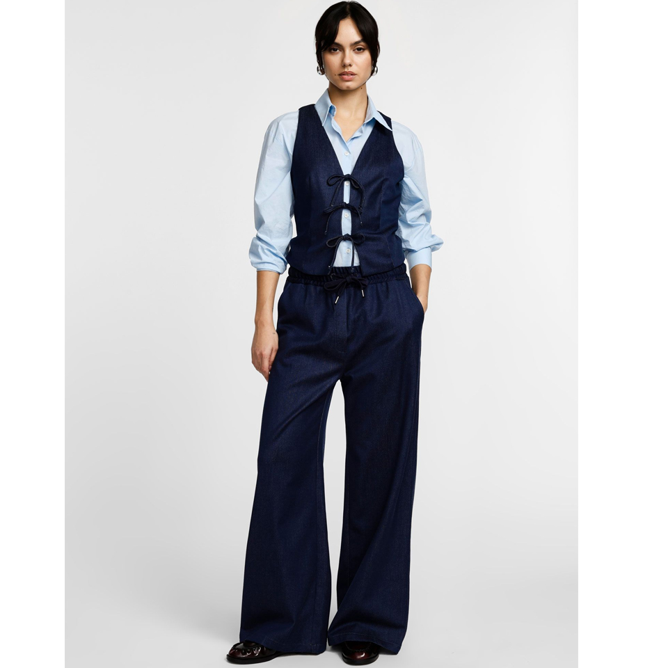 dámske široké rifle Please so stredne vysokým pásom a sťahovacou šnúrkou v páse