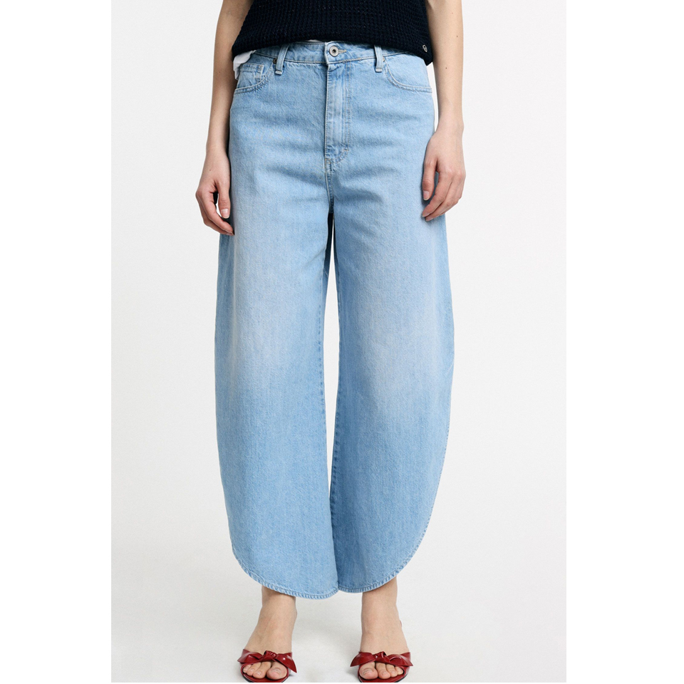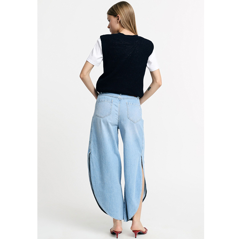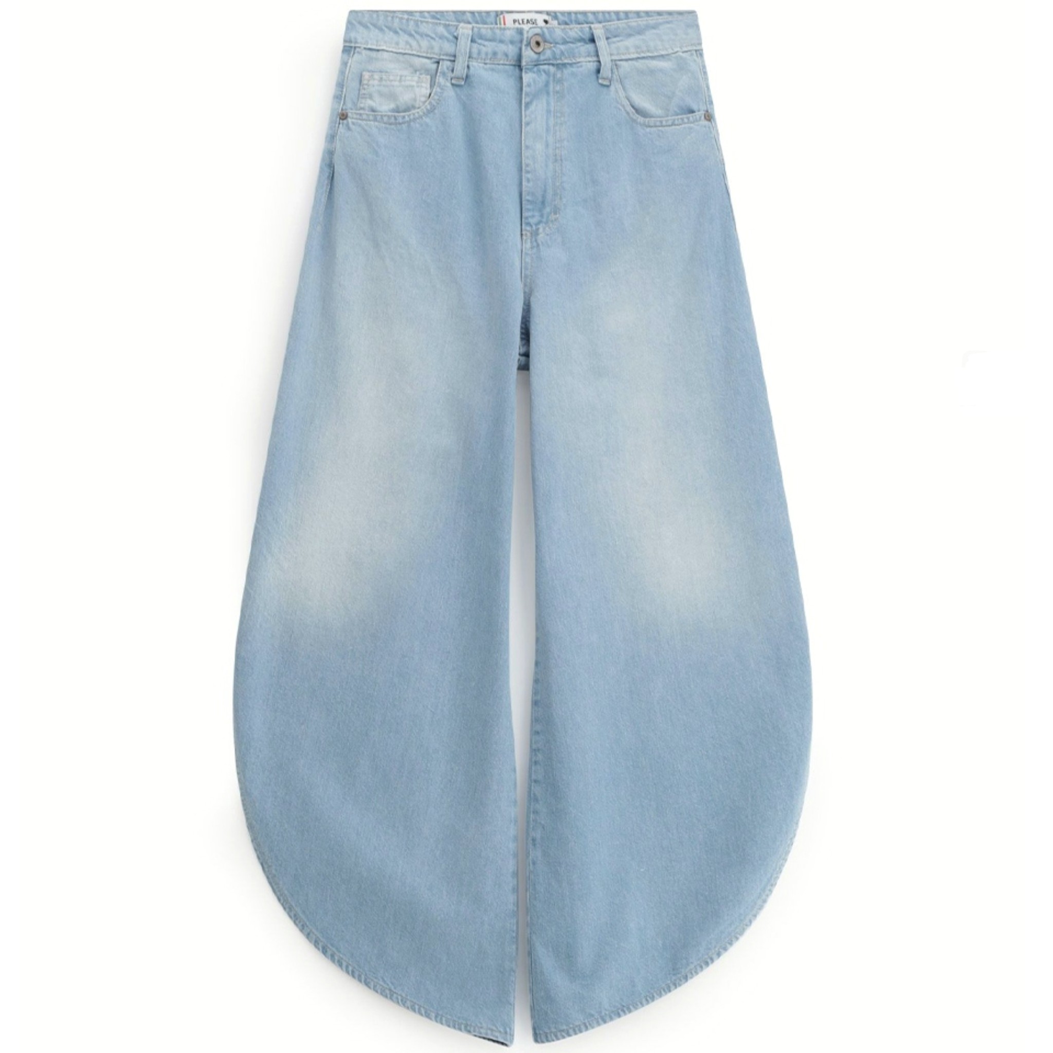 Rifle Please s vysokým pásom, extra širokými nohavicami a výraznými bočnými rozparkami pre pútavú, voľnú siluetu. Vyznačujú sa klasickým piatimi vreckami, pútkami na opasok a zapínaním vpredu. Navrhnuté tak, aby ste si z každého dňa urobili mólo, kombinujú kreativitu a praktickosť pre svieži a výrazný mestský vzhľad.