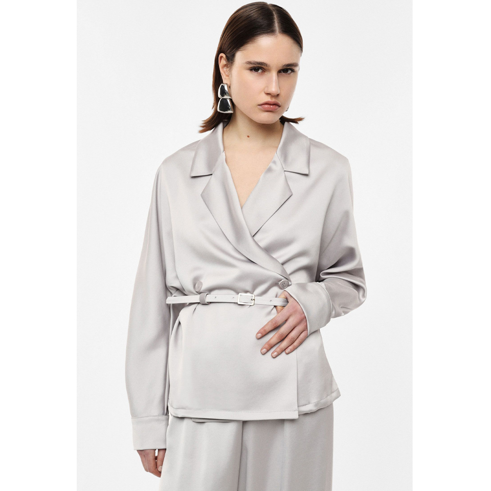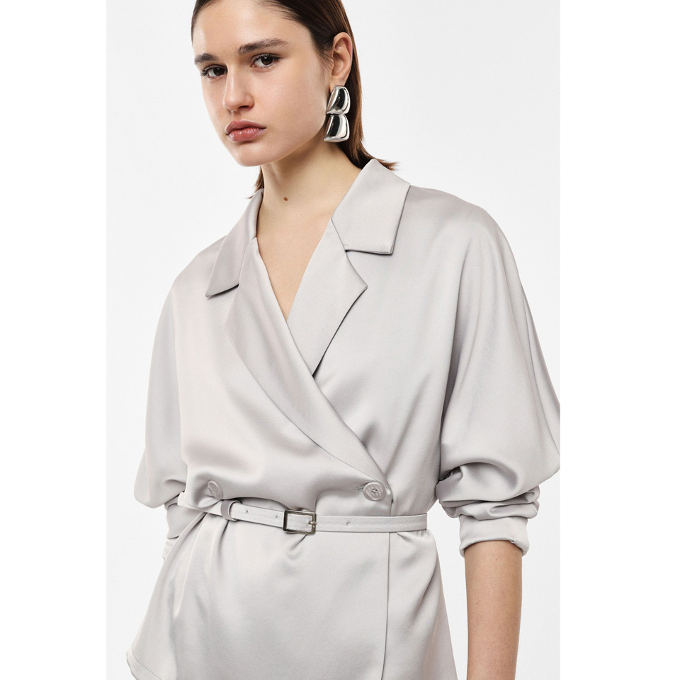 Toto dvojradové sako Imperial má plynulú siluetu s tenkým opaskom, ktorý ponúka jemné definovanie pásu a sofistikovaný vzhľad. Široké klopy a prispôsobený strih umožňujú výrazné kombinácie, určené pre tých, ktorí hľadajú štýlovú všestrannosť a osobitý odevný štýl.