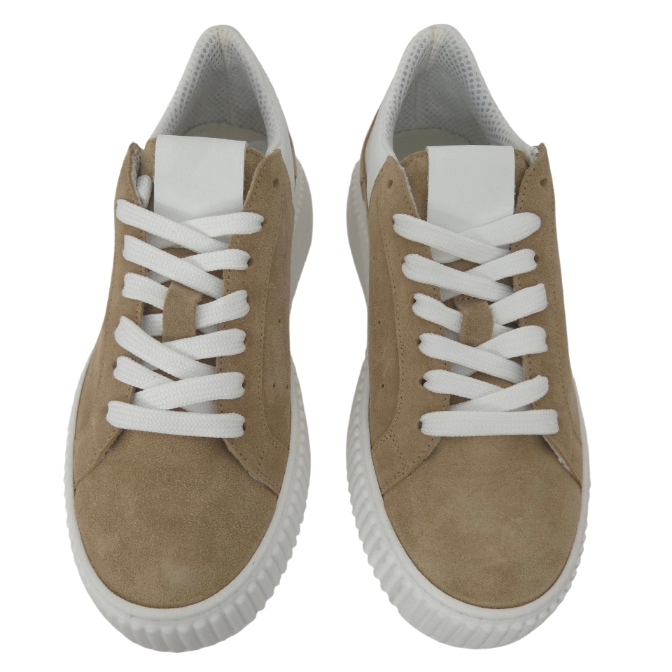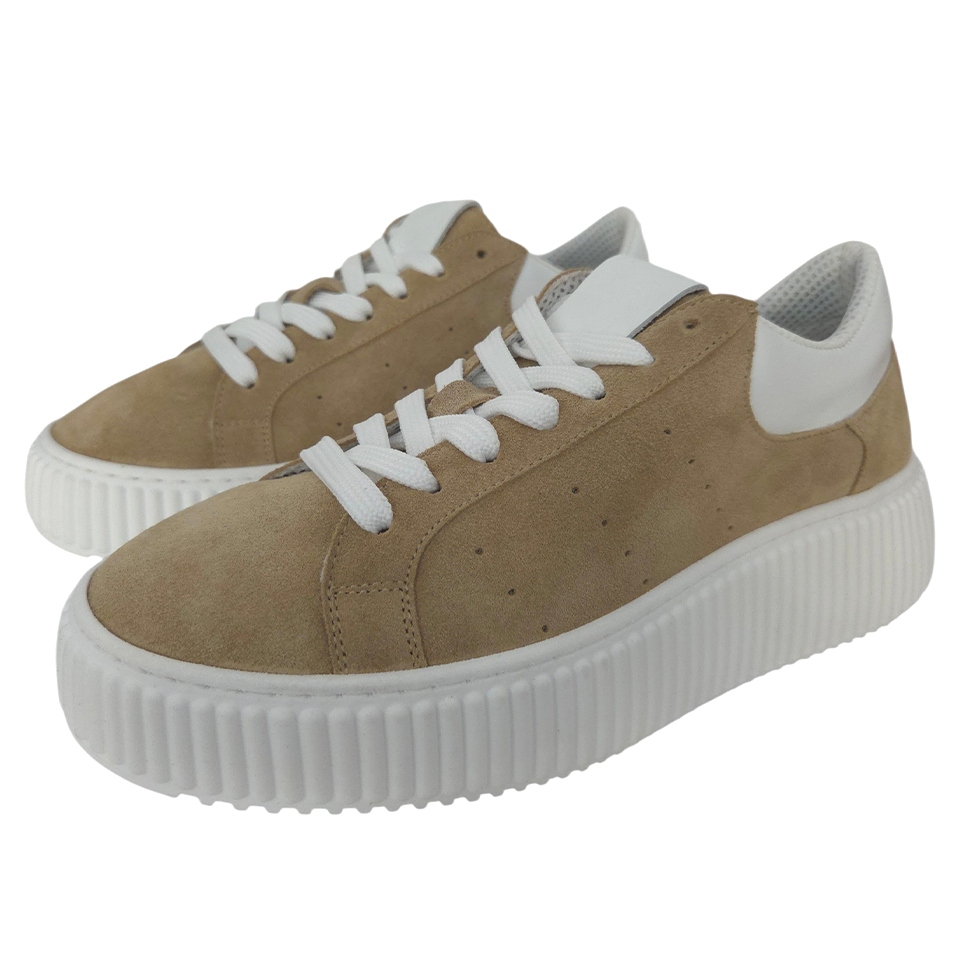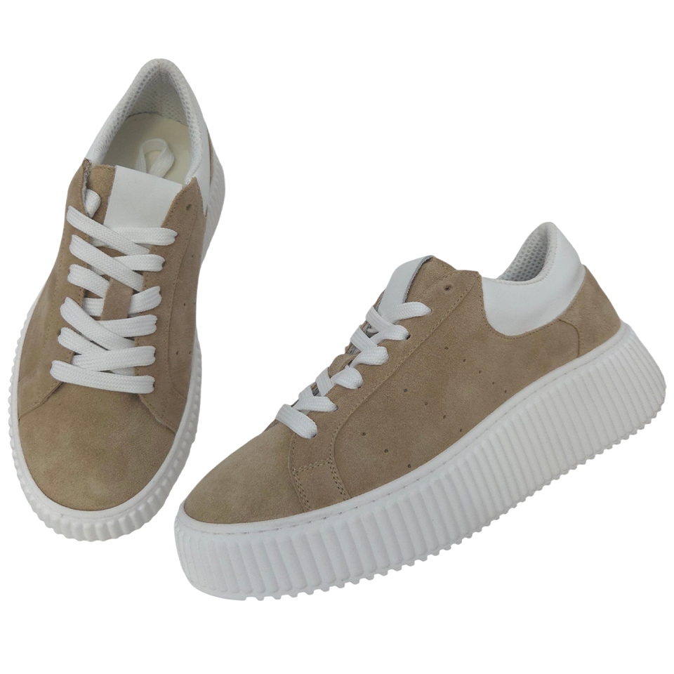 Zdvihnite svoj štýl do nových výšin (doslova) s našimi koženými teniskami od talianskej značky Ricciabera. Tento model spája nadčasový minimalizmus s moderným trendom hrubých podrážok. Vyrobené z prémiovej pieskovo-hnedej semišovej kože, tieto tenisky ponúkajú nielen luxusný vzhľad, ale aj výnimočnú odolnosť a komfort, ktorý sa prispôsobí vašej nohe. Kontrastná biela pätová časť a čisté biele šnúrky dotvárajú svieži a sofistikovaný look.